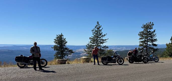 Hi all I wanted to give a brief rundown of our recent ride to John Day. We have been doing this ride for 4-5 yrs. Mid-September seems to be a great time to explore the scenery this area has to offer. Situated on highway 26 about 120 miles east of Redmond/Bend, there are numerous two lane blacktop roads that allow you to explore old logging, railroad, and gold mining towns. The area is sparsely populated, so there is very little traffic, but there are gas stations and a few places to eat along the way on the various routes we have taken. Our typical agenda is to arrive in the afternoon (Monday or Tuesday) have dinner. After breakfast the next morning, ride a loop of choice, consisting of 100-200 miles ending up back at a hotel in the middle of town. The breakfast and dinner restaurants are within walking distance. The fairgrounds in town has camping spots. This is repeated for two more days as desired.