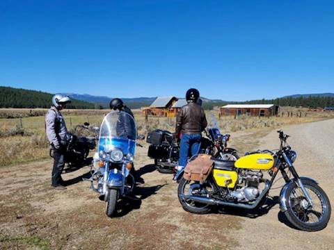 Our first day we headed to Prairie City for gas, to Sumpter to explore the old gold mining Dredge, then up the hill through windy blacktop roads to Ukiah. This area is a blend of forests, meadows, and some high peaks leveling off for a spectacular view of the Blue Mountains. There is a lot of hunting as evidenced by the various tents along the way, and antlers on many of the ranch buildings and stores in and around Ukiah. We found a food truck by the city park and had super burger and headed south to Mount Vernon. This section has several miles of curves along the river that makes you want to ride all day. From Mt. Vernon we headed east to home base and after a shower headed to the Outpost for an unwind session of liquid and some good food. This loop was about 190miles and took from 10am to 4pm. We opted to really take our time on the back roads to soak it up. . This is repeated for two more days as desired.